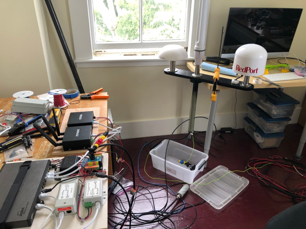 Unfortunately we are still in the boatyard. We are not going to be able to get the sides repainted this summer, so at this point we are just waiting for the bottom to be painted and a bob-stay added. Very much hoping to be in within about a week as there is a lot to do to get ready for the summer! Meanwhile Jeremy has been doing some great work improving our network and we can’t wait to get the new antennae installed.