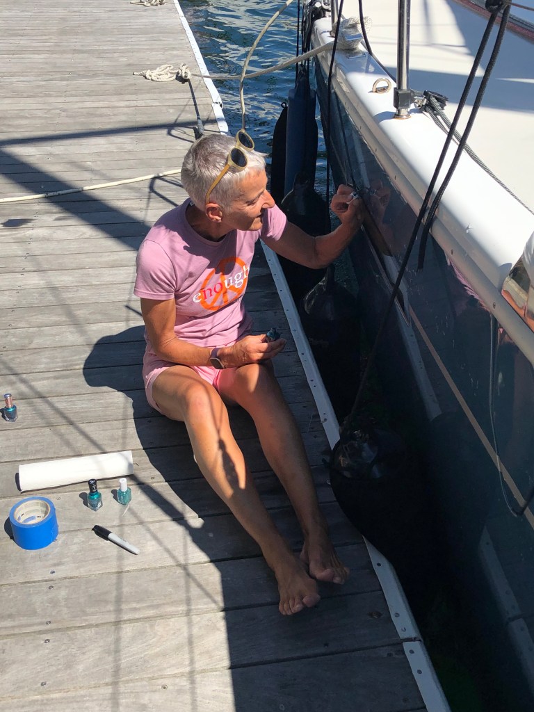 Last year, we got some scratches in the side of our boat, which the boatyard never got around to painting this spring. No problem – a little bit of nail polish in a similar color, and you can’t tell the difference from more than 2 feet away!
