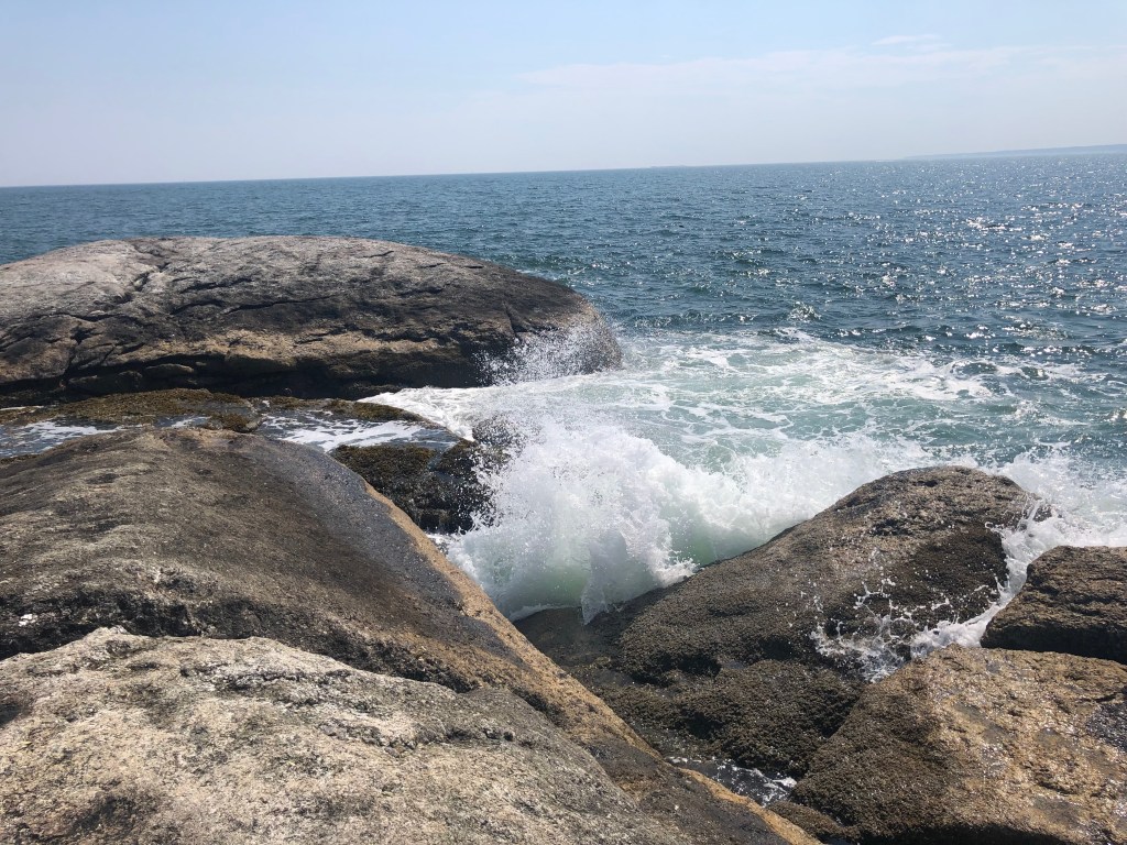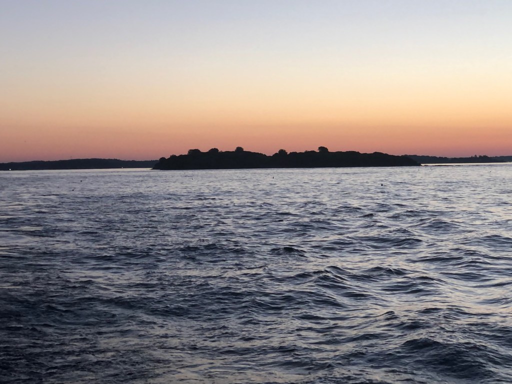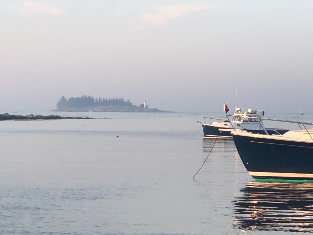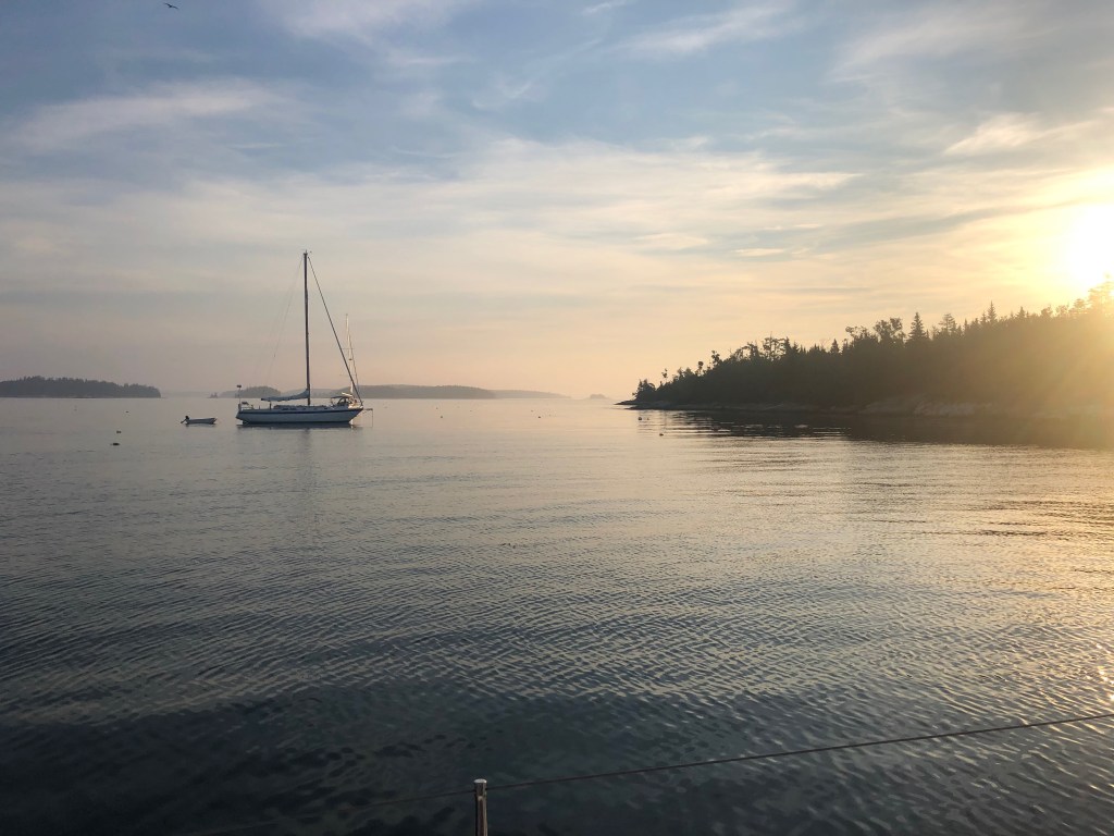 The next morning was sunny and peaceful. We started motoring west in very light wind, working our way around the Points of mid-coast Maine. The wind picked up, along with a big southerly swell, and the ride became pretty hairy! We were worried that our dinghy would be swamped, and had actually made a plan for what we would do if it sank (cut the line); however it bravely made it through. We came into Dolphin Marina in Potts Harbor, where we managed to refuel and get the dinghy on deck before huge thunderstorms came through (spoiler alert – they never appeared!). The next day we left before sunrise and came home to Marblehead. The wind was up and down but we enjoyed sailing for much of the trip, and had a great reach in from Eastern Point, escorted by Cadence.