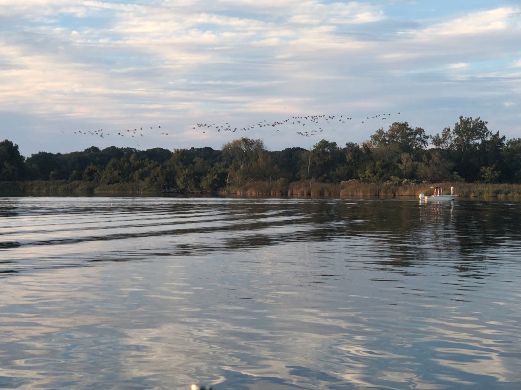 We enjoyed a lovely sunset on deck. After much arguing, the geese nearby decided it was time to leave.