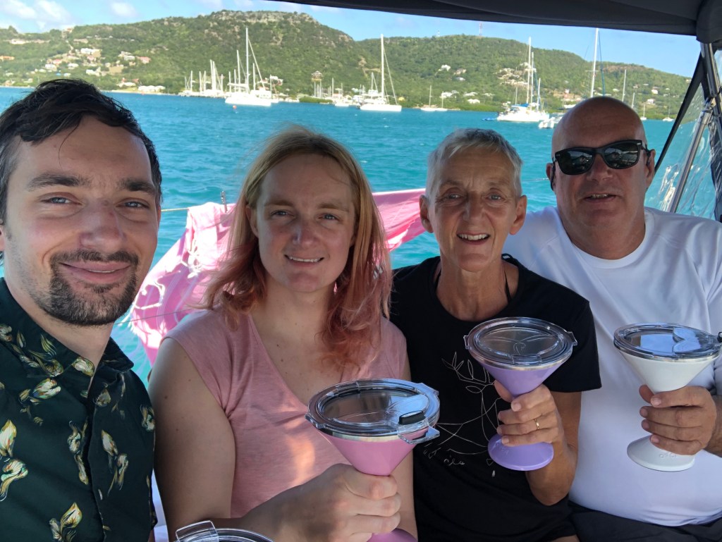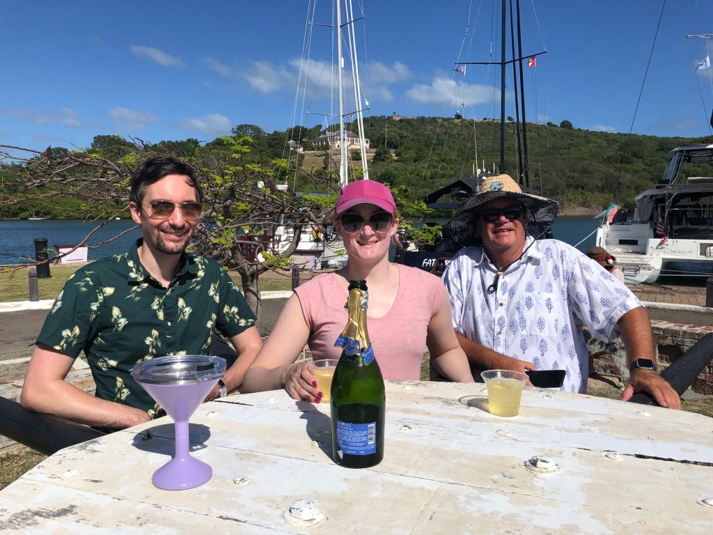 Blox and Jamie have flown out to join us for a week over Christmas. We’ve enjoyed steel drums and reggae music at Shirley Heights, champagne in Nelson’s Dockyard on Christmas Day, a hike up to Fort George, and generally hanging out enjoying the sun! The Christmas Winds have kicked in and we’re not sure if we’re going to sail anywhere, but Falmouth Harbor is a great place to be based. Merry Christmas and Happy New Year to everyone!