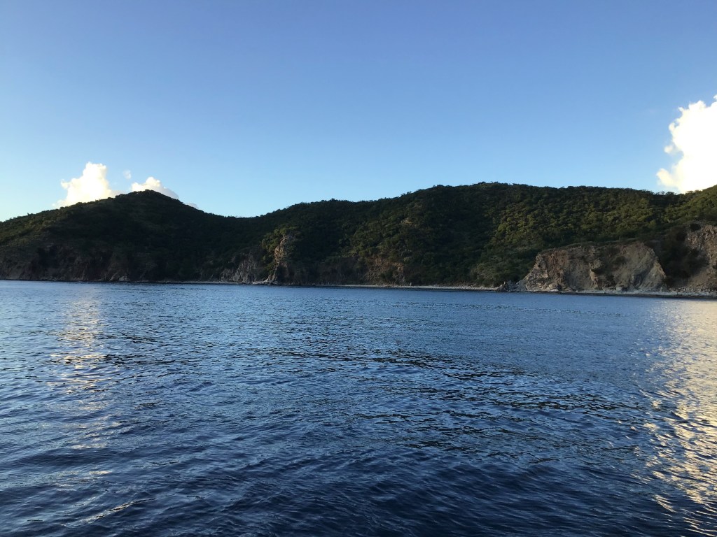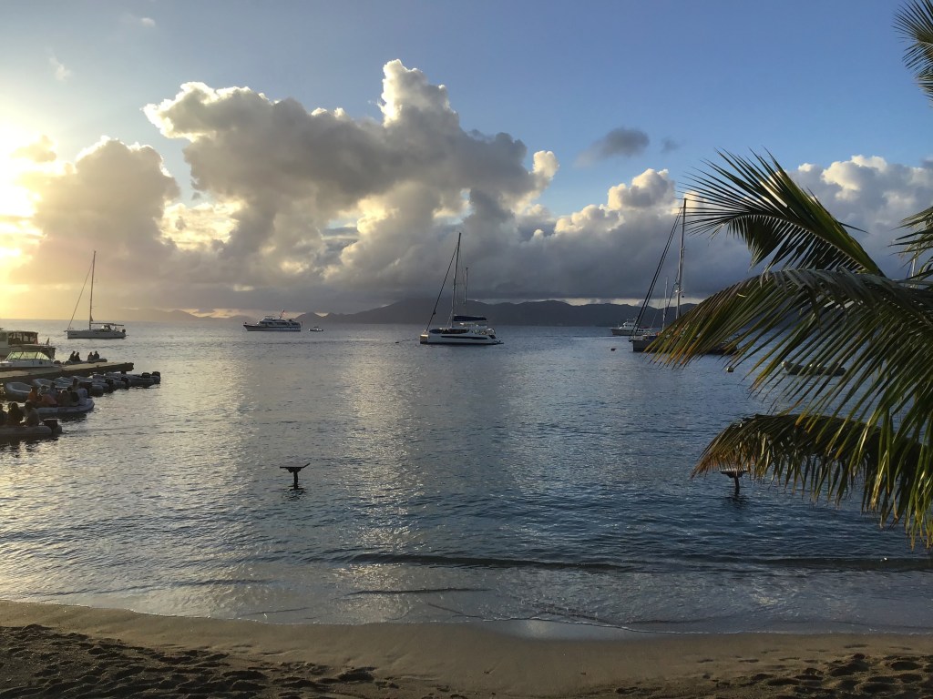 We spend a couple of nights on Jost Van Dyke, which I’ll deal with in a separate post, then for Anne and Marcus’s last night we came back round to Peter Island an anchored off White Bay. This was a lovely secluded spot with spectacular views and a nice beach. Peter Island was a super-exclusive resort which is still rebuilding after Irma: The beach was bristling with signs telling us not go further than the beach. Nevertheless we had some good swimming, and saw several turtles. We wish the resort well for the future.