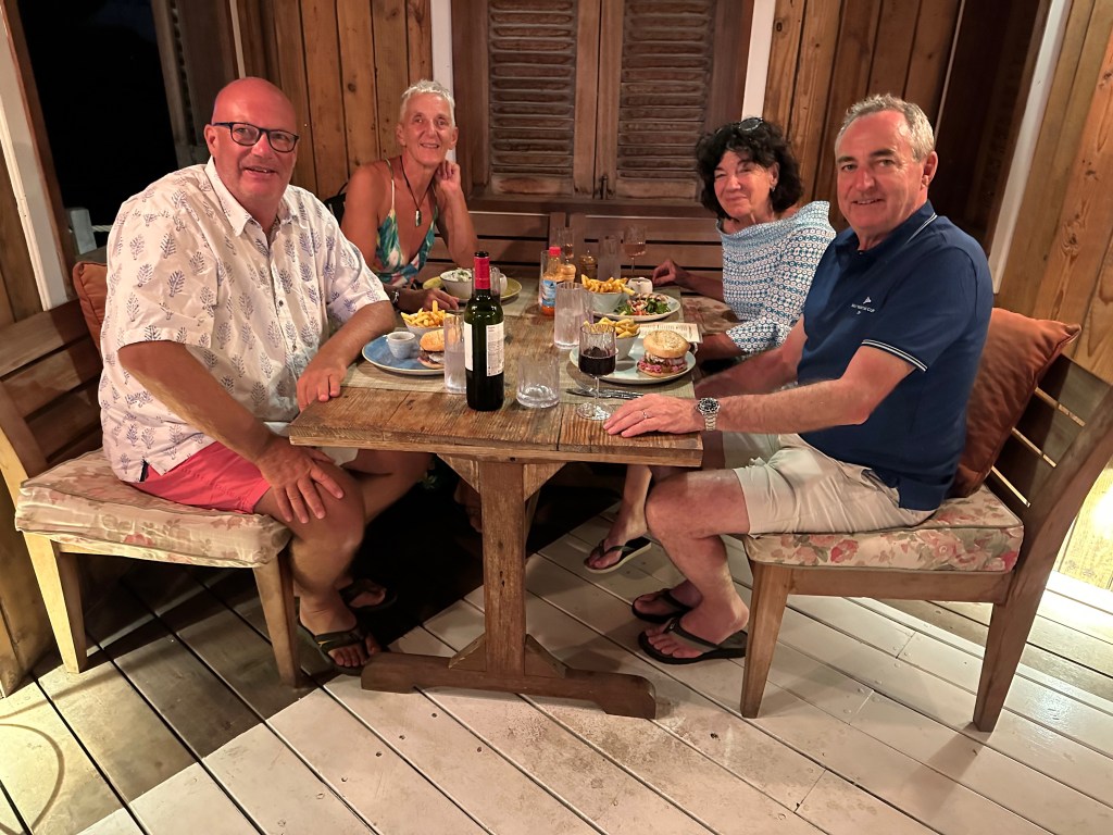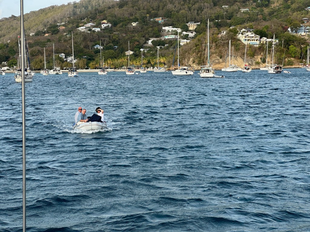 Friends Jack and Dru flew out to join us in Bequia, and we did a farewell tour of the Grenadines! First we visited Mustique. We explored a little on shore, swam off the beach, and enjoyed cocktails and an excellent dinner at Basil’s Bar. Memo to self: The rum punch at Basil’s is extremely strong and is to be treated with extreme caution!!