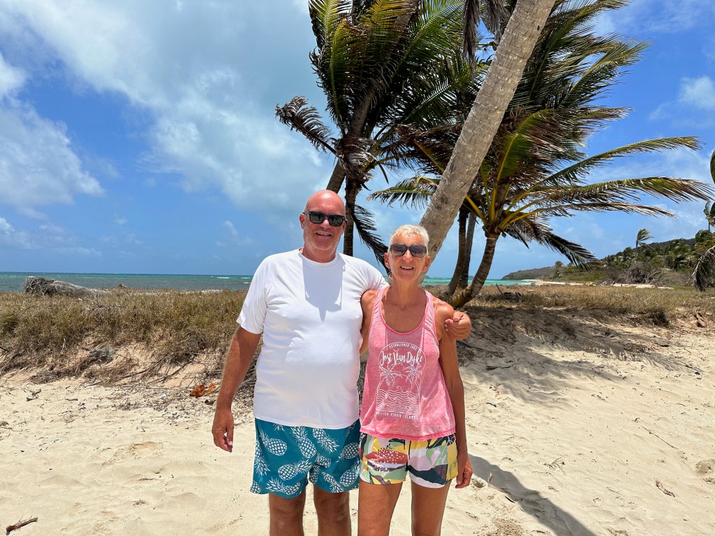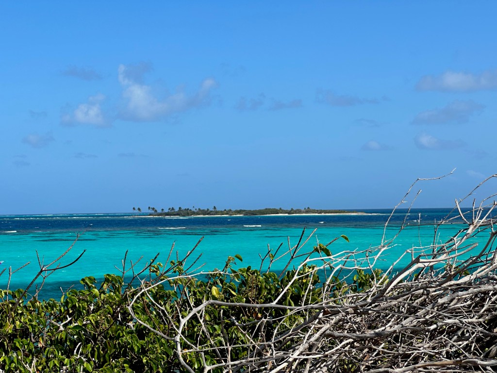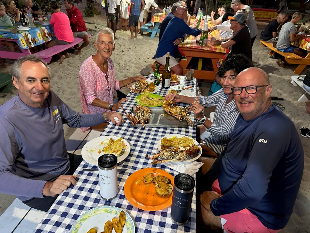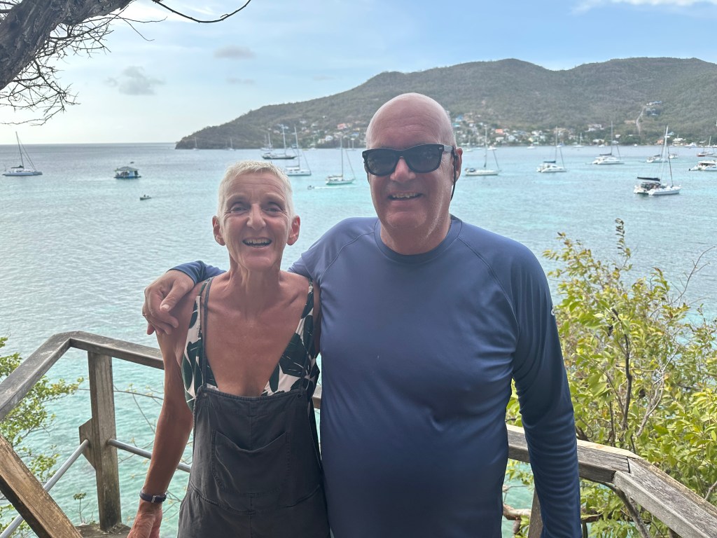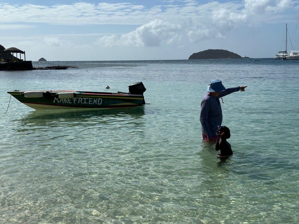 Next day looked like good conditions for the Tobago Cays: sunny and not too windy – so we moved down there. We were able to snorkel with turtles and rays off Baradel Island, and climbed a little way up the island to admire the amazing colors in the water – it never gets old! The boat guides warned us that the wind would be building overnight and suggested we move round to the cut for better protection. We tried, but couldn’t find space, and also felt that it was more rolly than the main anchorage, so we moved back round. We enjoyed the lobster cookout on the beach, this time hosted by Michael, who was the best boat guy we used this year.