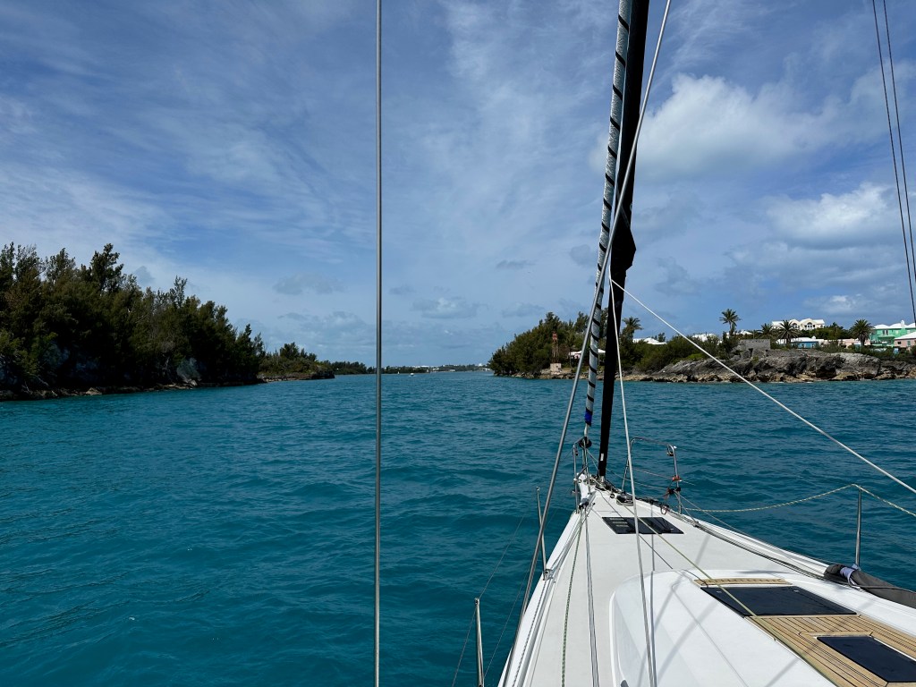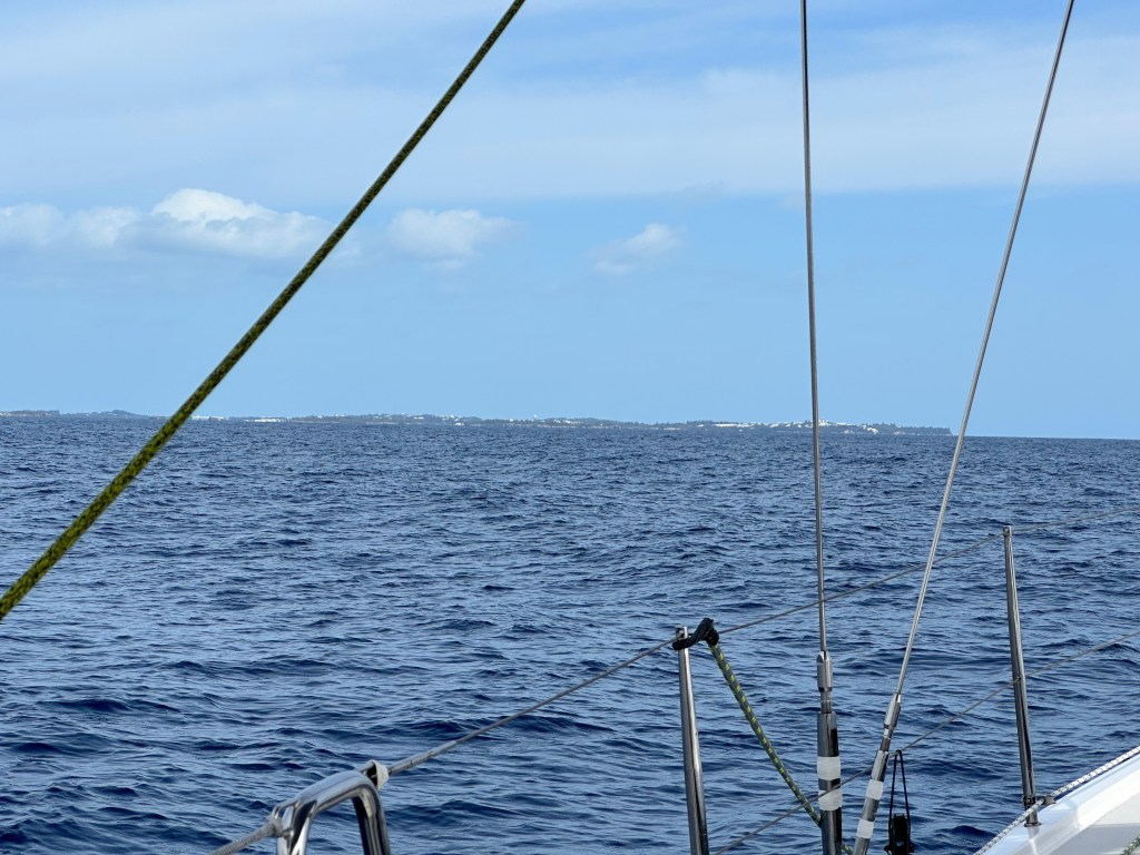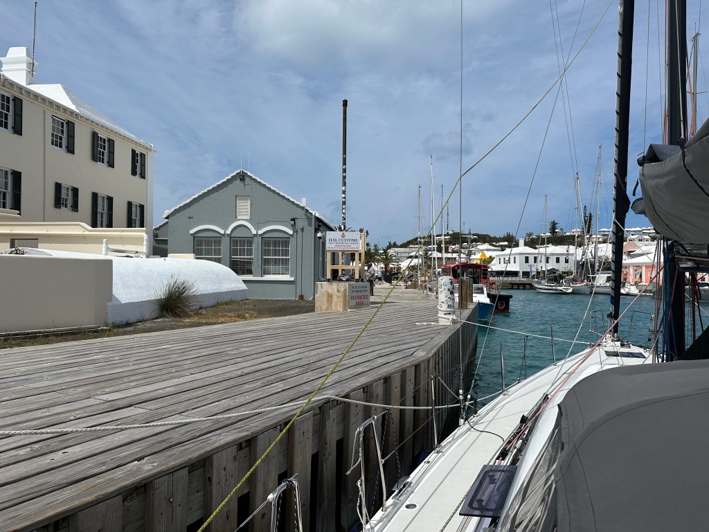 We arrived in Bermuda on May 16 after a slow night where we were never quite able to sail. Tom pointed out that we hadn’t actually steered the boat ourselves since leaving Antigua, and grabbed the wheel for the last few miles. It was exciting to see Bermuda, first as a few specs on the horizon and then more distinctly. We knew we’d need to come into the customs dock to clear in, and were pleased to see that we were ahead of several other boats all converging on the same spot.