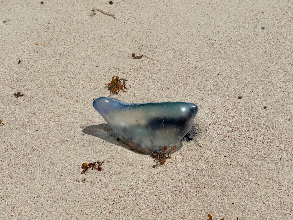 A Portuguese Man of War washed up on the beach – we saw a lot of these in the last day or two of our passage