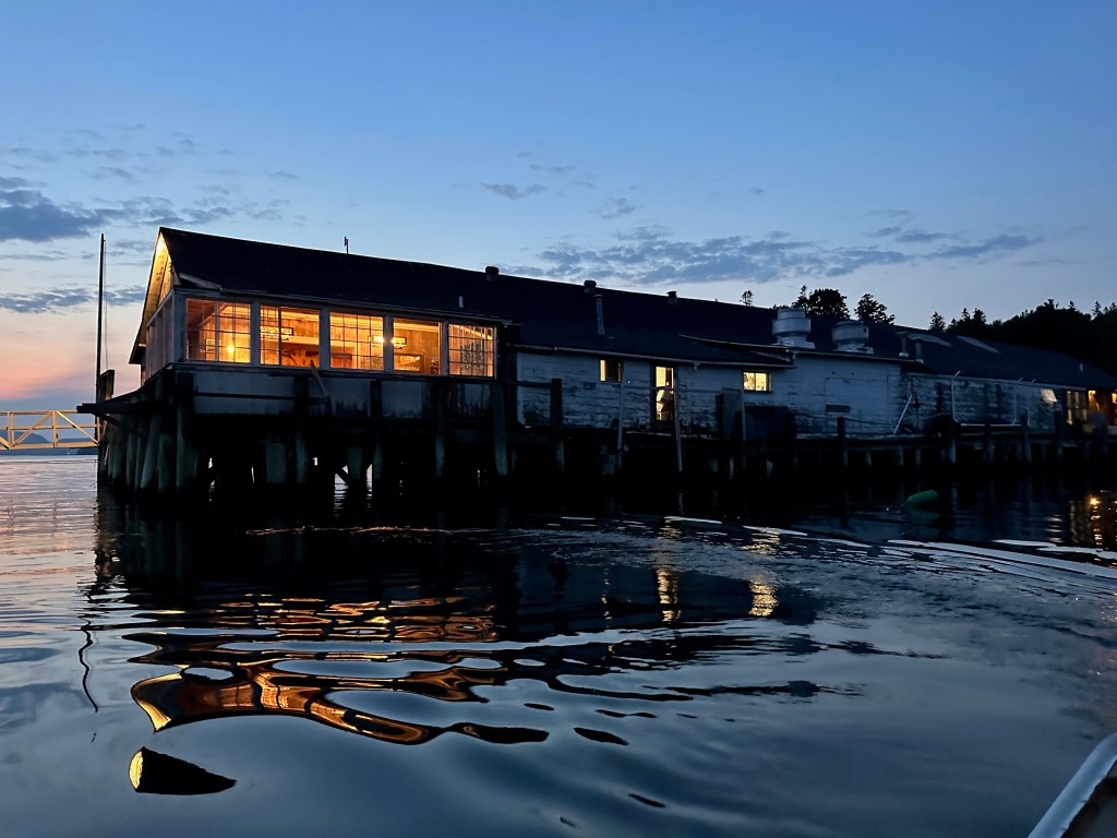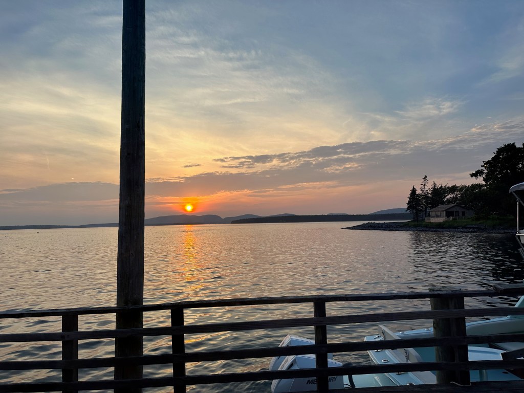 We headed Down East as far as Mount Desert Island. We tried to get a mooring in Northeast Harbor but as usual found they were full and headed instead for Little Cranberry Island, also known as Islesford. We anchored at the outside of the harbor and headed in to Islesford Dock Restaurant for an excellent dinner! The views of the mountains on MDI as the sun went down were spectacular.