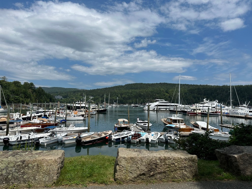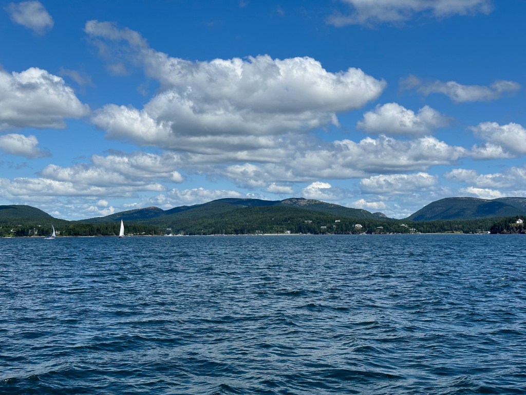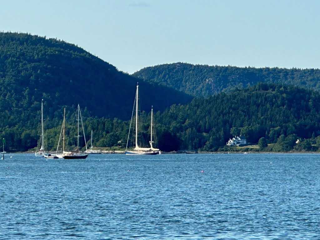 In need of a few provisions, we took the ferry over to Northeast Harbor and loaded up on lobster meat, fresh Maine blueberries and tonic water – all the essentials! We called into the Harbormaster’s office to ask for tips on getting a mooring. What he told us is: Mooring rentals end at 11 am, so that’s a good time to check with him. All the moorings are privately owned, and then rented out through the harbormaster when the owners don’t need them: there are only a handful in our size range and they don’t turn over often as most people want to spend several nights in NEH. We also concluded that we’ve done all the hikes around the harbor, there isn’t much of a town, and the views are better from Islesford. So there!