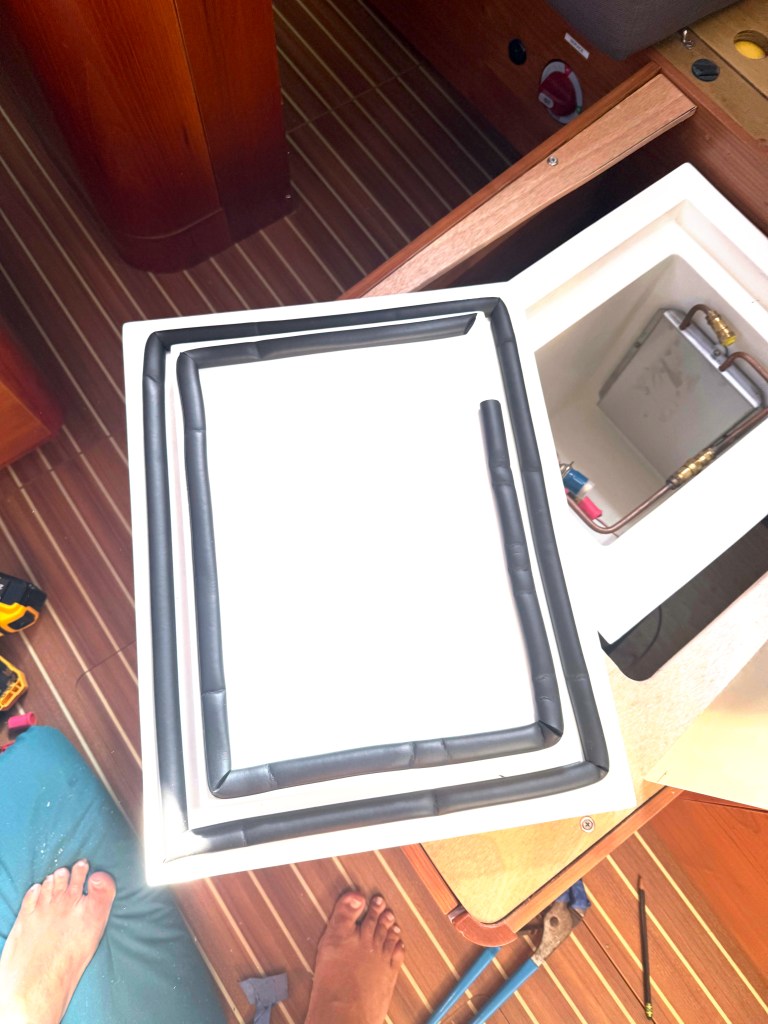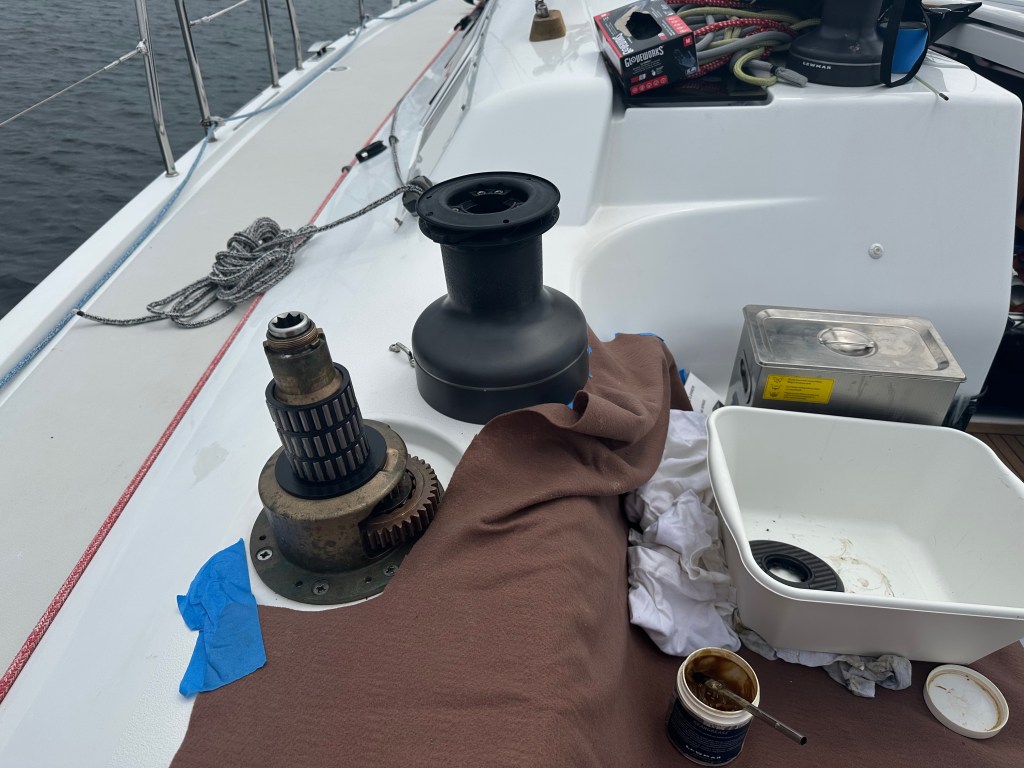 There have been a lot of projects this spring: In addition to the new rudder (designed by Jim Taylor and built by Competition Composites), Jeremy has been building a freezer, there was a lot of wiring to do (my favorite!), and I learned to service the winches. We also had the sail drive seal replaced, new engine mounts, new turbo, etc.