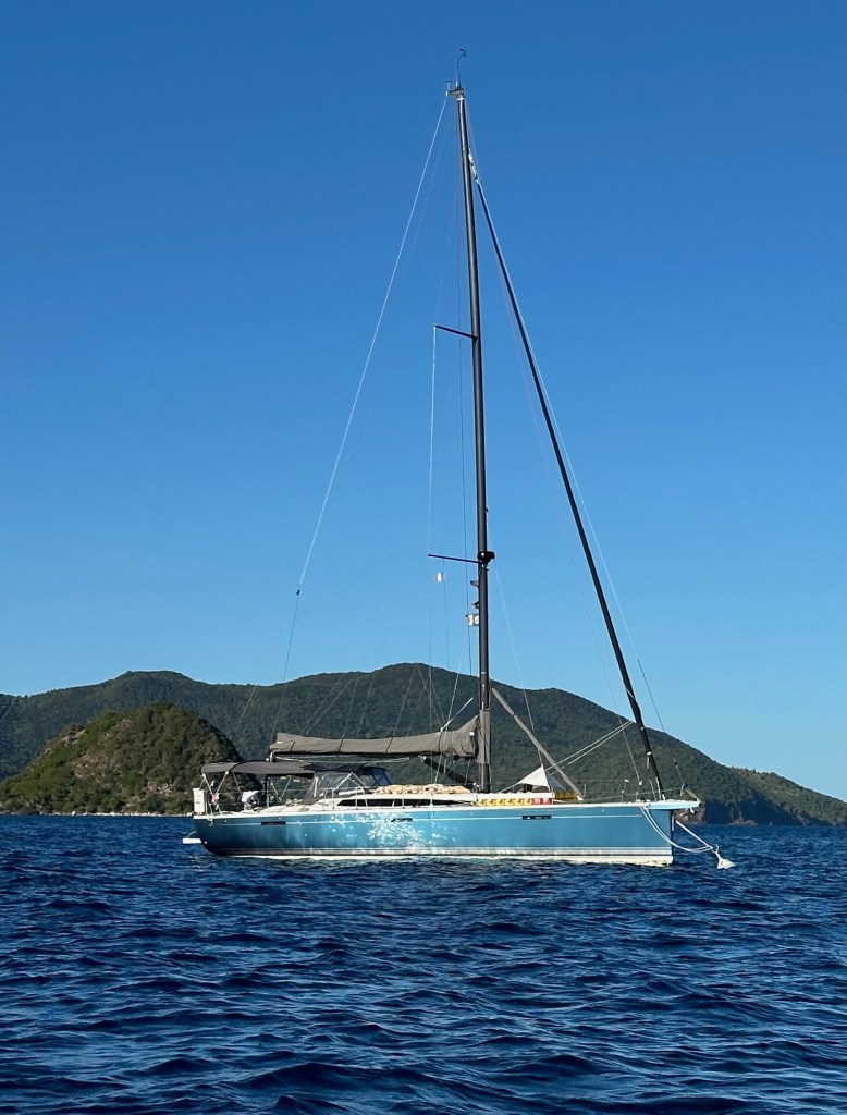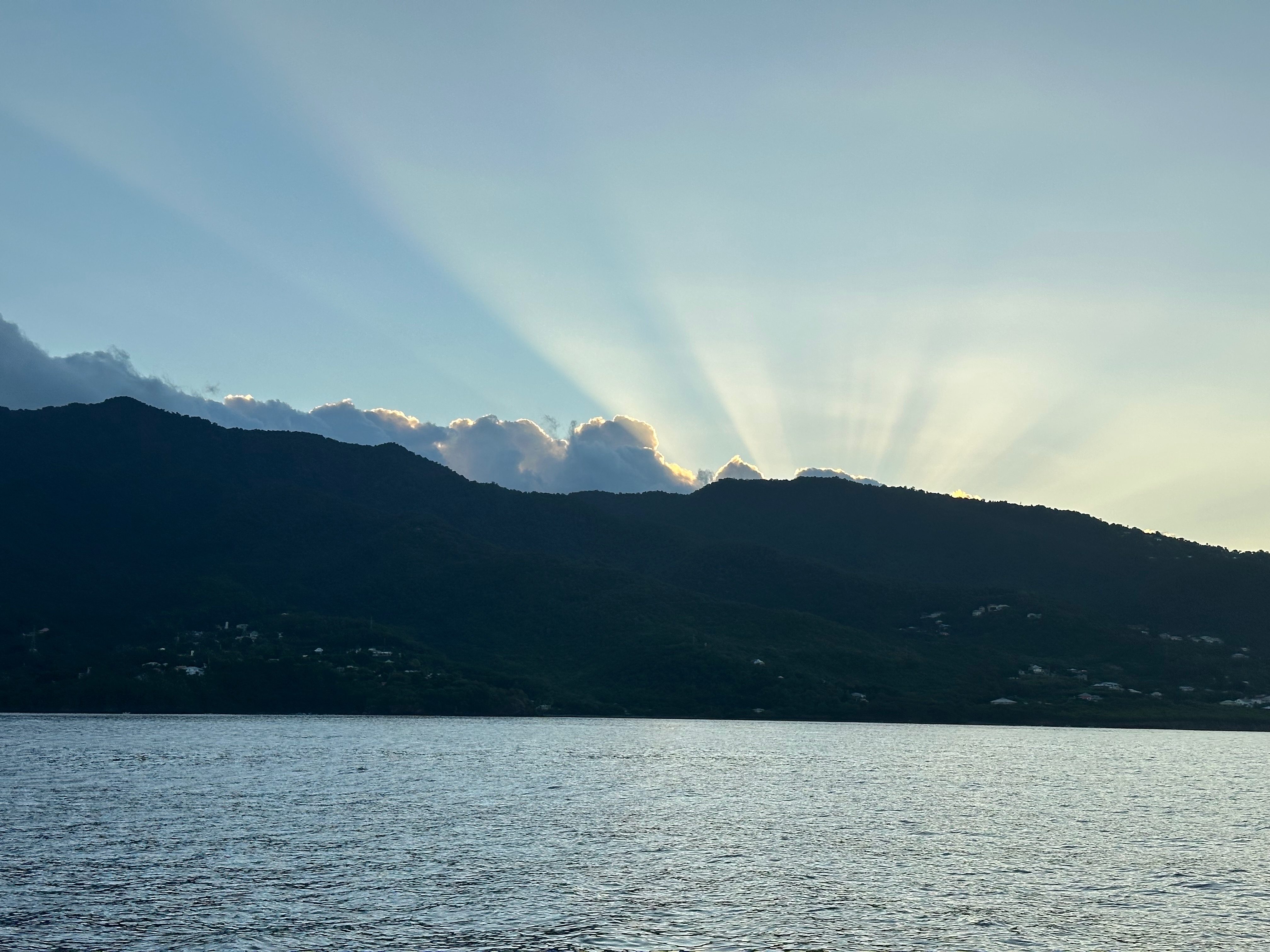 The next morning we left at first light and moved down to Iles des Saintes. It was a stunning trip with the sun coming up over lush green mountains. The Saintes is one of our favorite anchorages and this was our first time there this season, so we weren’t sure how busy it would be. It turned out that at 10 am we were in plenty of time to get a good mooring – we’ll see if that holds true for the rest of the season as we plan to come back several times to show guests this lovely place. Jamie needed to catch up on some work so Jeremy and I took the dinghy over to Ilet de Cabrit where there is nice swimming and snorkeling. We checked out the path that leads up to Fort Josephine but we didn’t have shoes with us, so we’ll save that one for next time.