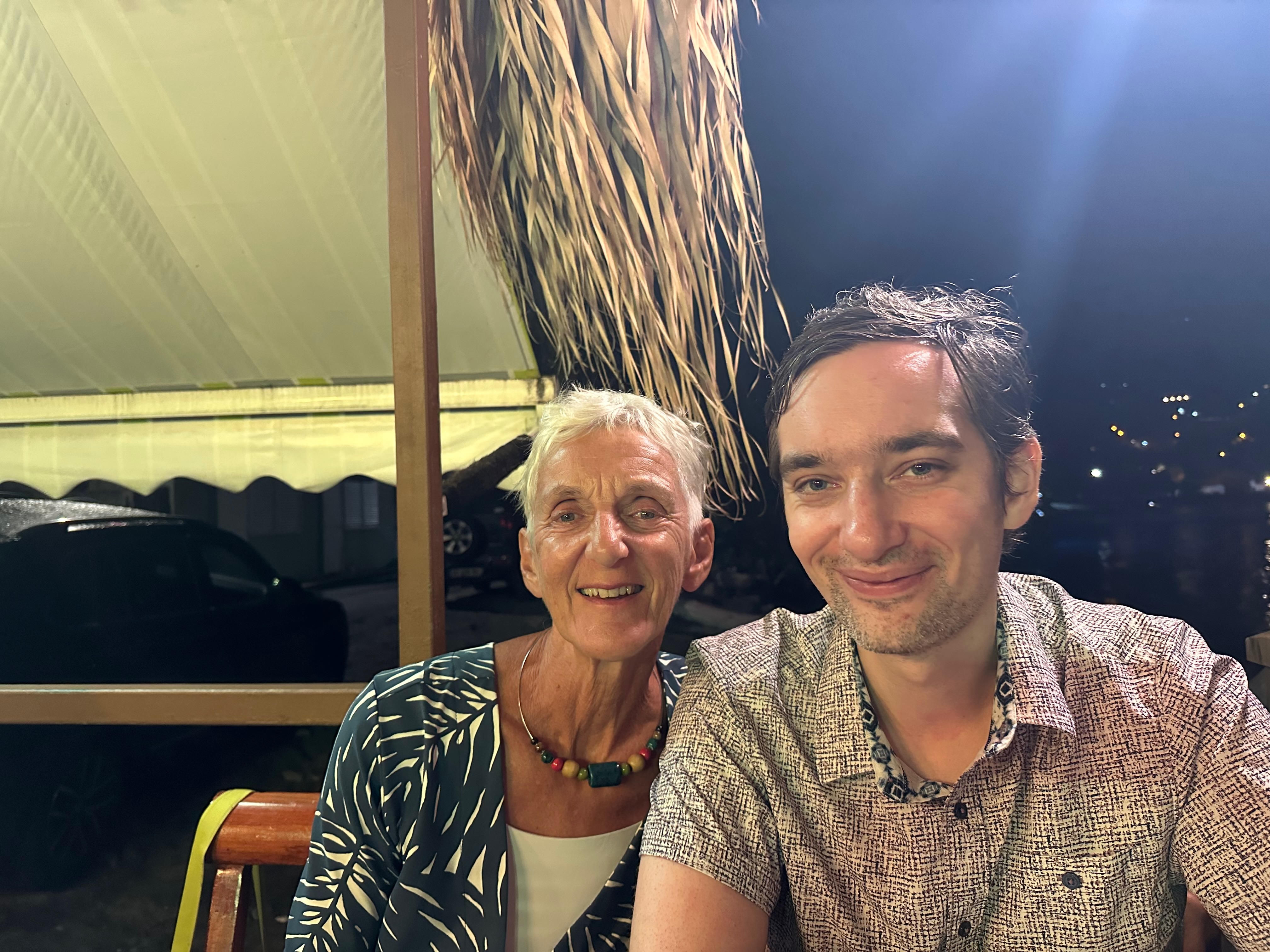 Jamie arrived in Antigua for Christmas and we immediately headed for Guadeloupe. We were thrilled that he decided to stay for an extra couple of days, so we were able to get a little further. He had to work some of the time, but at least he got to do it in beautiful places! We first went to Deshaies, where we had dinner at Madras Restaurant, and the next day hiked over to Grande Anse for swimming and lunch. Back in town, things were starting to get quieter for Christmas Eve.