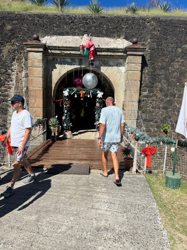 We hiked up to Fort Napoleon, which was rather garishly decked out for Christmas. We decided that you really only do this hike for the views, since the fort itself is a bit disappointing. The fort was a base for the Battle of the Saintes in April 1782. They don’t actually recount much history of the struggle between France and Britain to control the Caribbean islands, probably because the French lost! We enjoyed an excellent dinner at Au Bon Vivre in the center of town, far superior to normal Caribbean fare. The rest of our time in The Saintes was spent exploring the pretty little town and swimming off the beach or the boat. We’re looking forward to coming back soon.