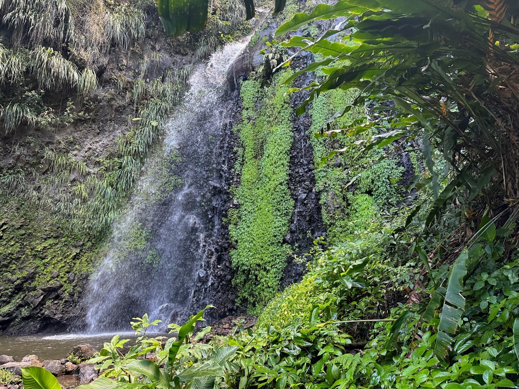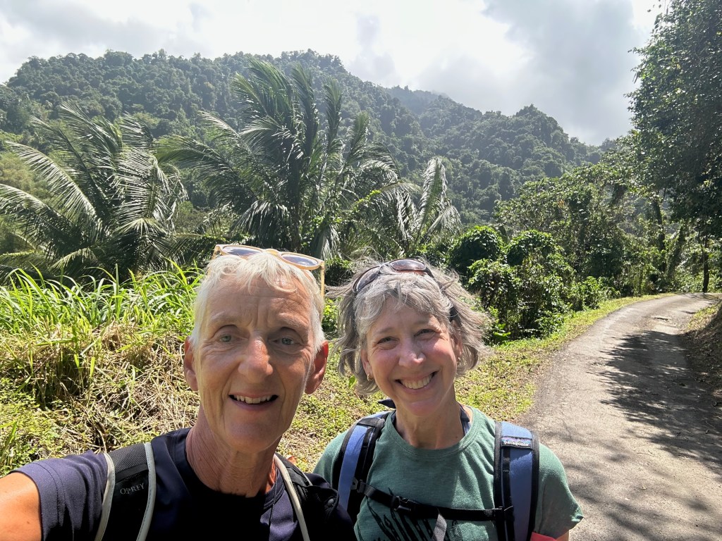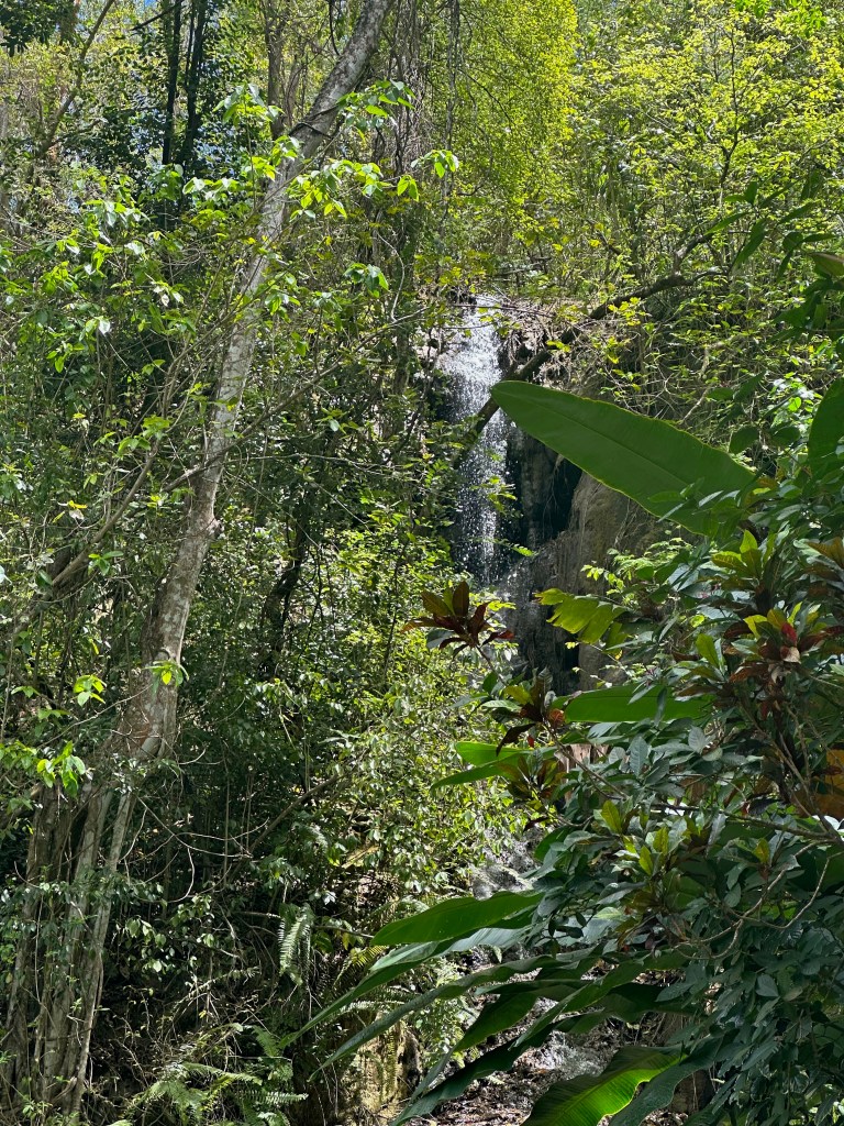 In the morning we decided to explore ashore. The anchorage felt slightly sketchy and the dock definitely didn’t look welcoming for visitors to tie up to, so Jeremy ran the rest of us in. There wasn’t much in the town and it looked a bit down on its luck. We walked up to Dark View Falls, which was an easy walk, first along roads and then on a track through the rain forest. The track took us to two levels of falls, both with a pool for swimming – Sue and I swam in the upper one. Apparently there is a third level but that’s a scramble and we didn’t see any kind of trail.