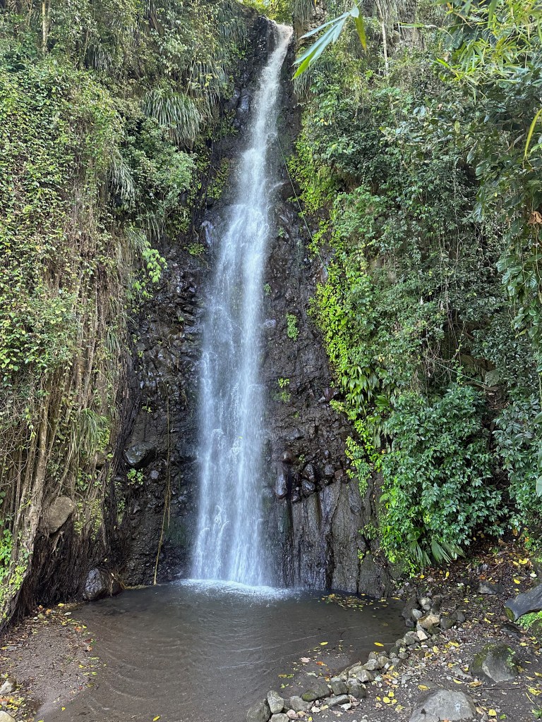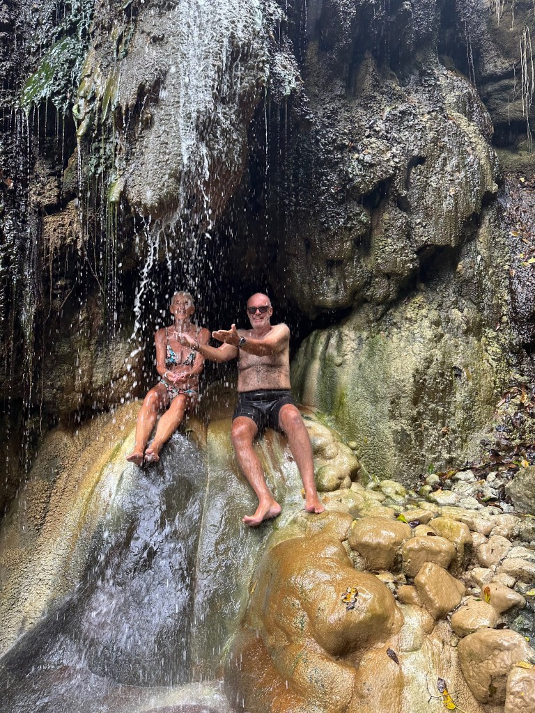 On to the volcano where we soaked in the hot mud baths and were painted in different colors of mud. Alas, no photos! Feeling rather grubby, we got back in the van to drive to a waterfall to rinse off. Offered the choice of warm or cold, we chose the warm waterfall! It was a pretty hike down and there were warm pools to rinse off in.