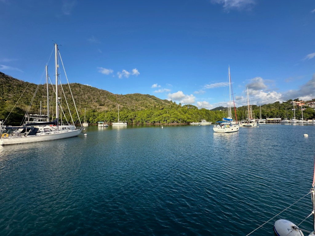 The southern end of St Lucia and the east coast of St Vincent have had a bad reputation for safety over the past few years, and many sailors skip them. We found lovely harbors without many boats around. People were friendly and eager to help – in a few cases too eager! Some guides, such as Jahleel, have been able to establish a reputation for providing good services and tours, and this is starting to attract more boats, which in turn helps the local economy. It’s also reassuring to go ashore and see how people are living in the villages – the guy walking down the road carrying a machete isn’t an ax-murderer, he’s just on his way home from working in the fields. That said, we took additional safety precautions, such as hoisting our shiny new dinghy out every night and pulling up our swim platform to make it harder for someone to board us (we already lock the dinghy on each night and whenever we leave it). We felt safe, and hope that we’ll be able to spend some more time in St Vincent in particular on the way north next season.
